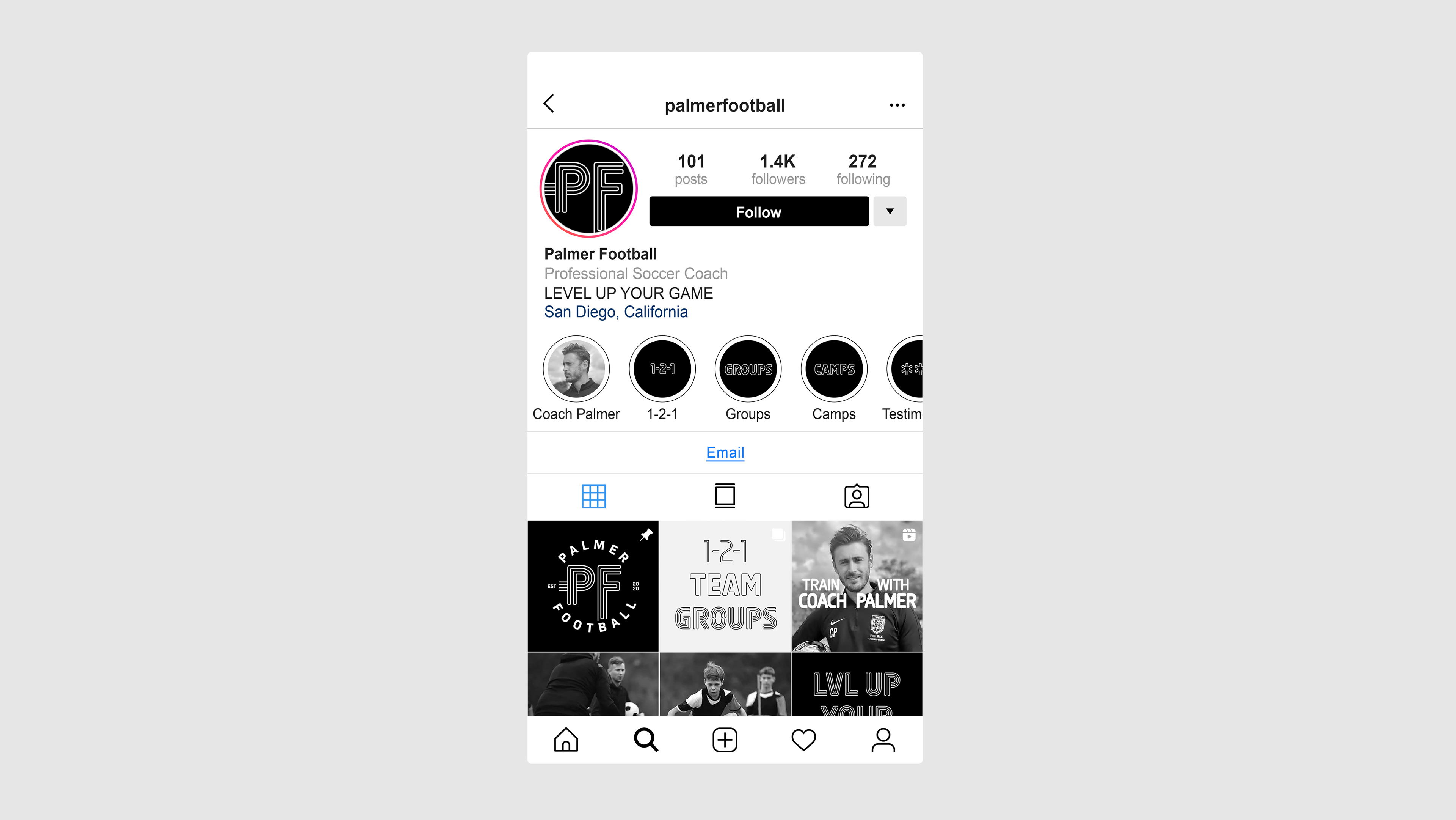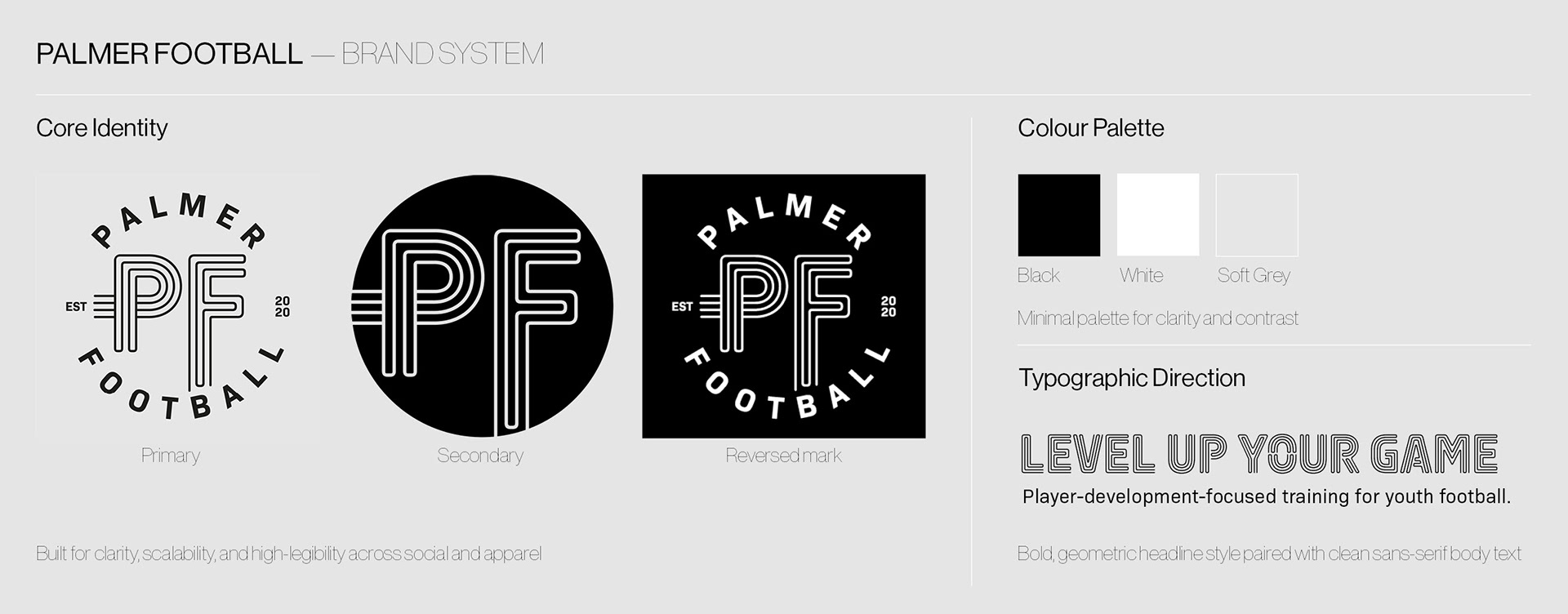 Logo design and brand identity for a football coaching startup based in San Diego, USA. Working closely with the client, a classic club-crest inspired identity was developed for use primarily across training kits and apparel.